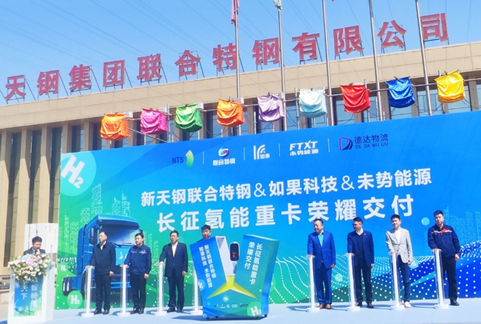 4月18日,未勢(shì)能源、如果科技與新天鋼集團(tuán)聯(lián)合特鋼在天津舉辦“長(zhǎng)征氫能重卡榮耀交付”活動(dòng),這是未勢(shì)能源聯(lián)合產(chǎn)業(yè)鏈伙伴共建市場(chǎng)生態(tài)、共推氫車應(yīng)用的又一實(shí)質(zhì)性成果,也是三方共同發(fā)力氫能清潔運(yùn)輸,為天津“生態(tài)立區(qū)”注入綠色新動(dòng)力的一次落地示范行動(dòng)。